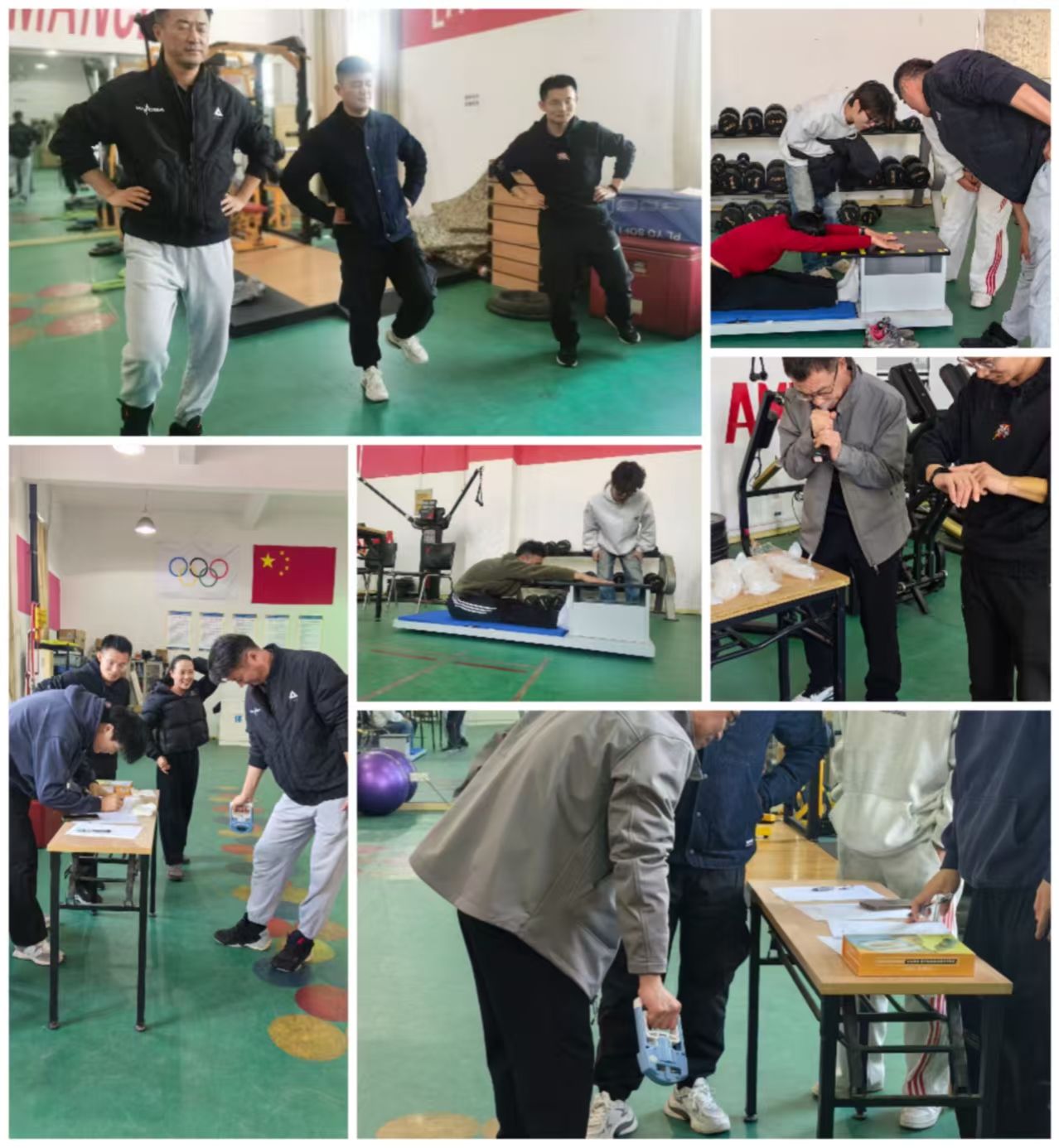 本次活动坚持专业性与趣味性相融合,设置了个人全能赛与团队协作赛两个环节。个人赛参照《国民体质测定标准》,涵盖肺活量、坐位体前屈、闭眼单脚站立、握力四项核心体能项目。赛场上,平日耕耘于教学与训练一线的教师们化身为全力以赴的“运动员”,认真完成每一项测试:肺活量检测时的全力吹气、体前屈时的极限拉伸、单脚站立时的凝神平衡、握力较量时的瞬间爆发,无不展现体育人严谨专注、追求卓越的职业风采。